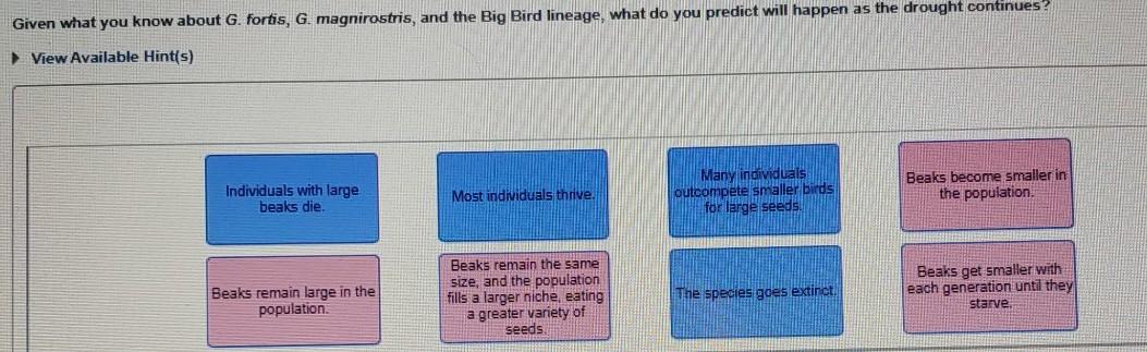 Biology 22062019 0030 mommatann. Fortis fight over smaller seeds and water holes but the Big Birds are dominant to G. Magnirostris and the big bird lineage what do you predict will happen as the drought continues.